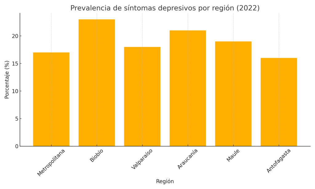 Según la Encuesta Nacional de Salud, el Biobío presenta una de las tasas más altas de prevalencia de síntomas depresivos a nivel nacional, especialmente en comunas de la provincia de Arauco y Concepción.